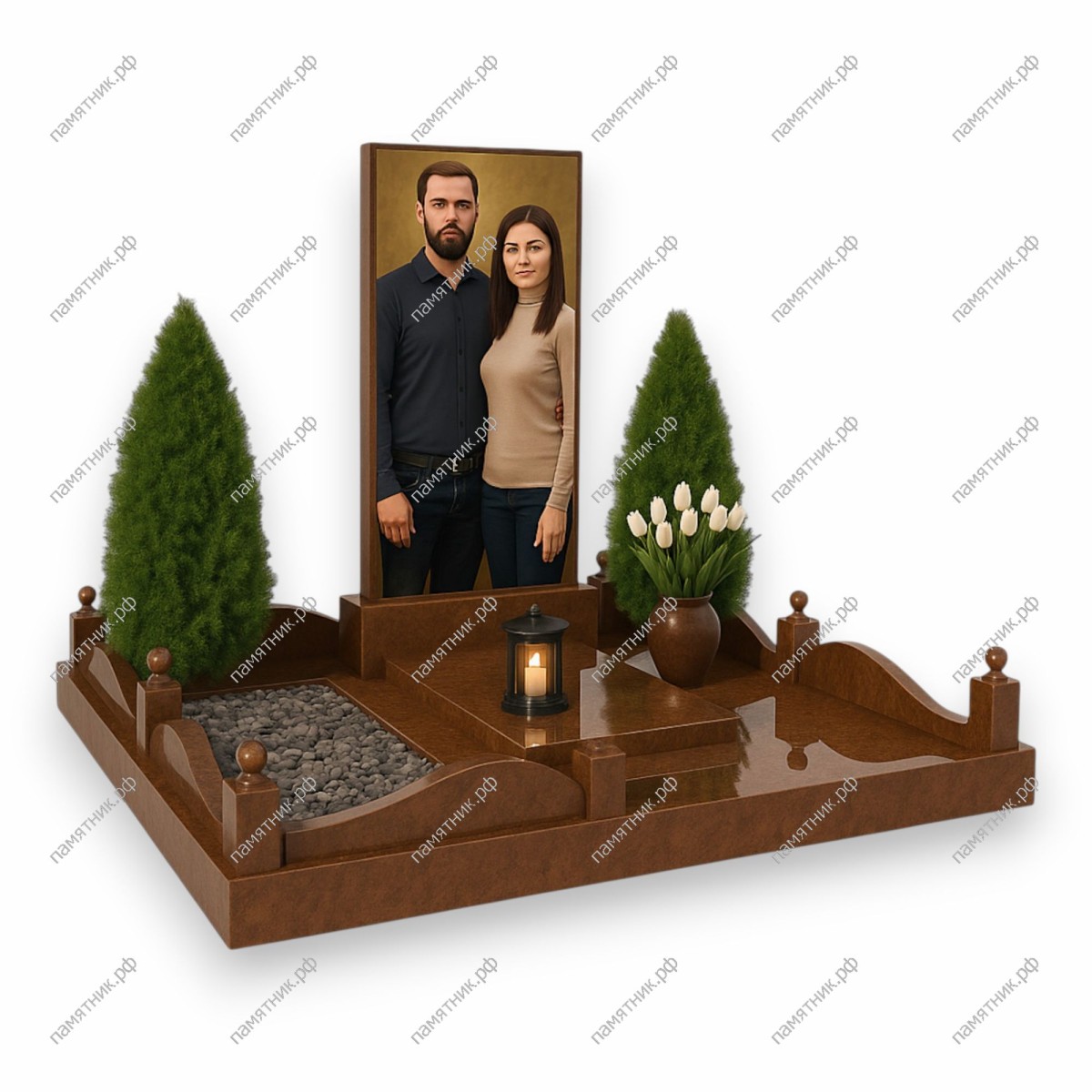 Лаконичный и строгий комплекс, выполненный в благородном коричневом цвете. Высокая прямоугольная стела подчеркивает вертикаль композиции, создавая сдержанный, но величественный образ.