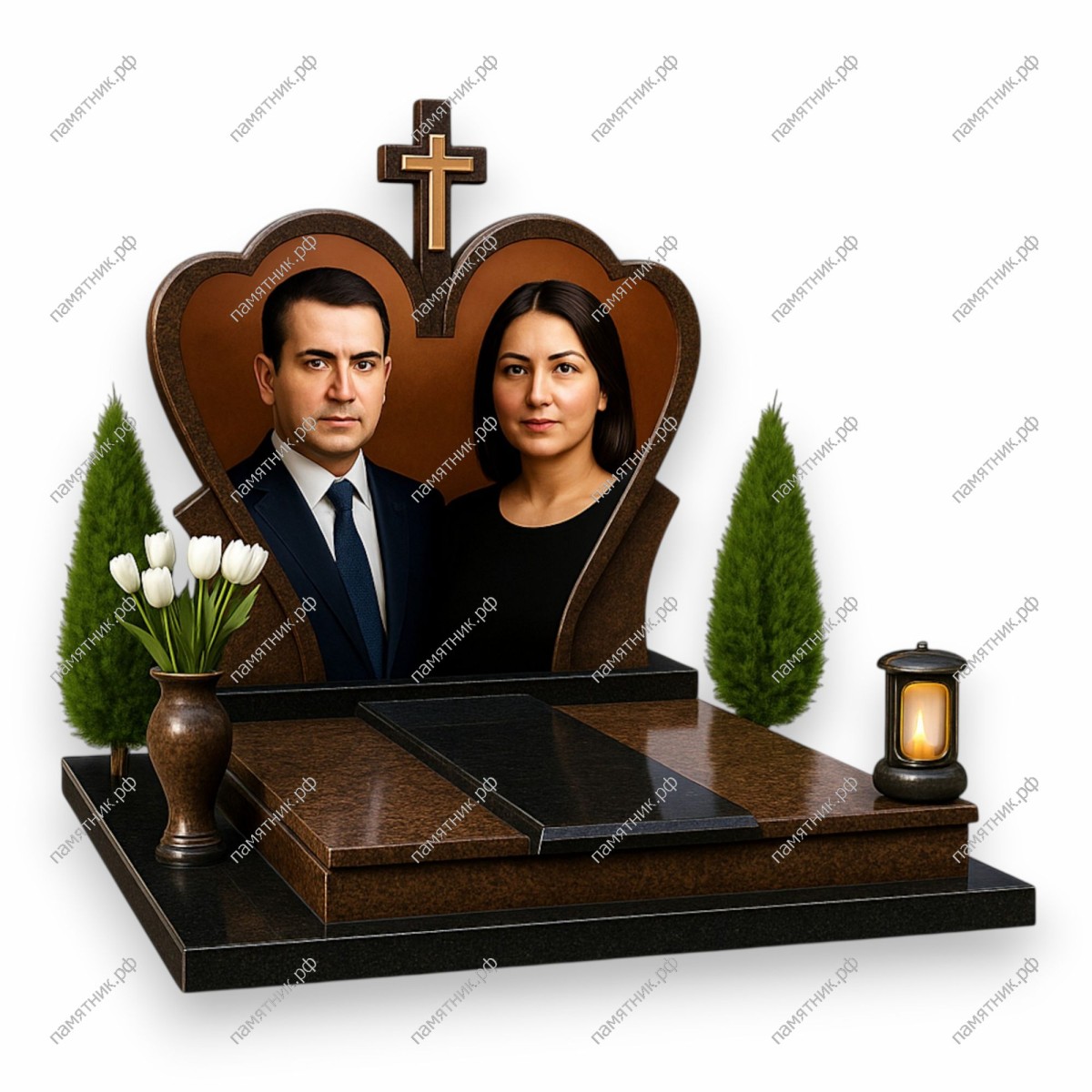 Трогательный и символичный мемориал в форме сердца. Этот памятник из теплого коричневого гранита олицетворяет бесконечную любовь и единство душ.