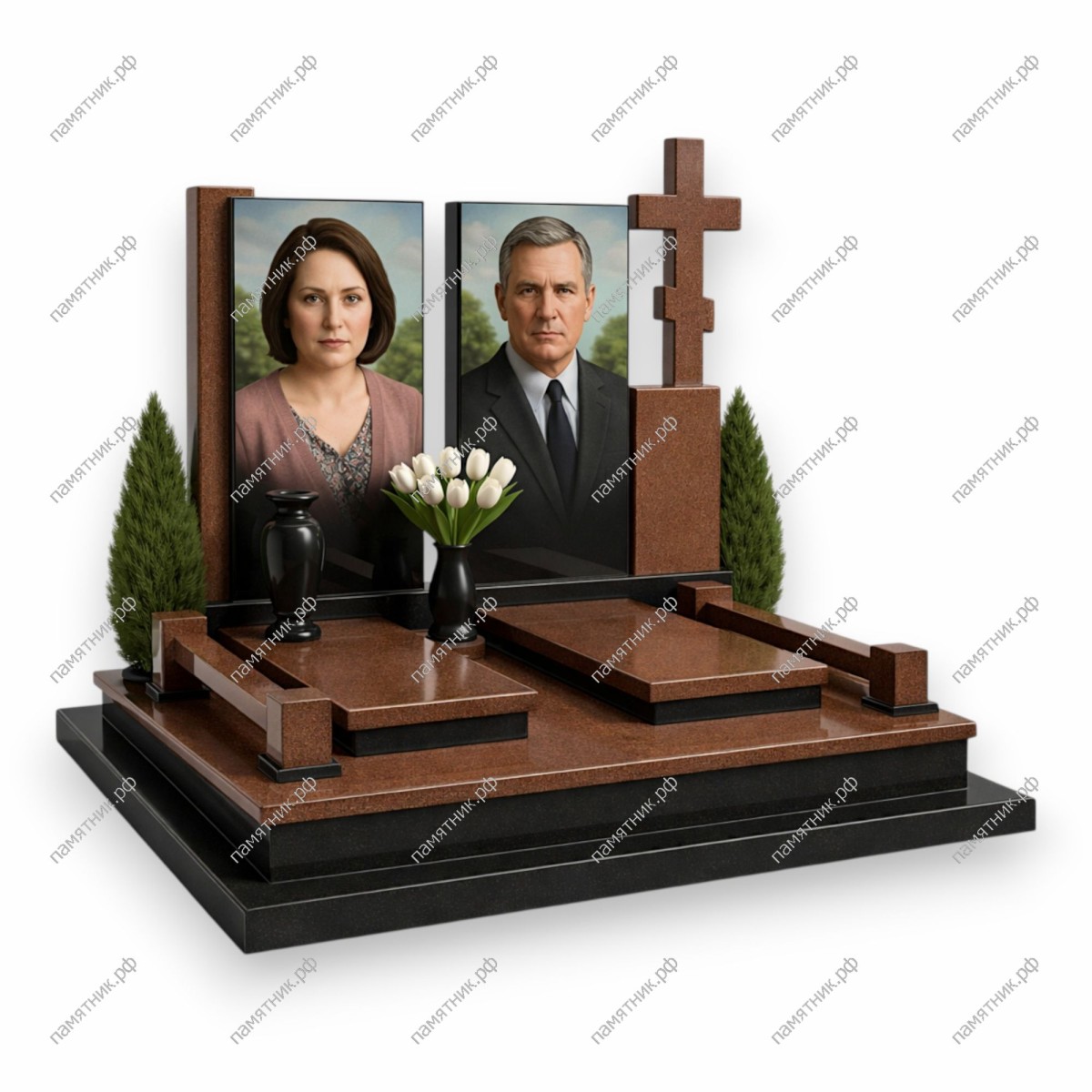 Материал: Коричневый гранит + Черный гранит.