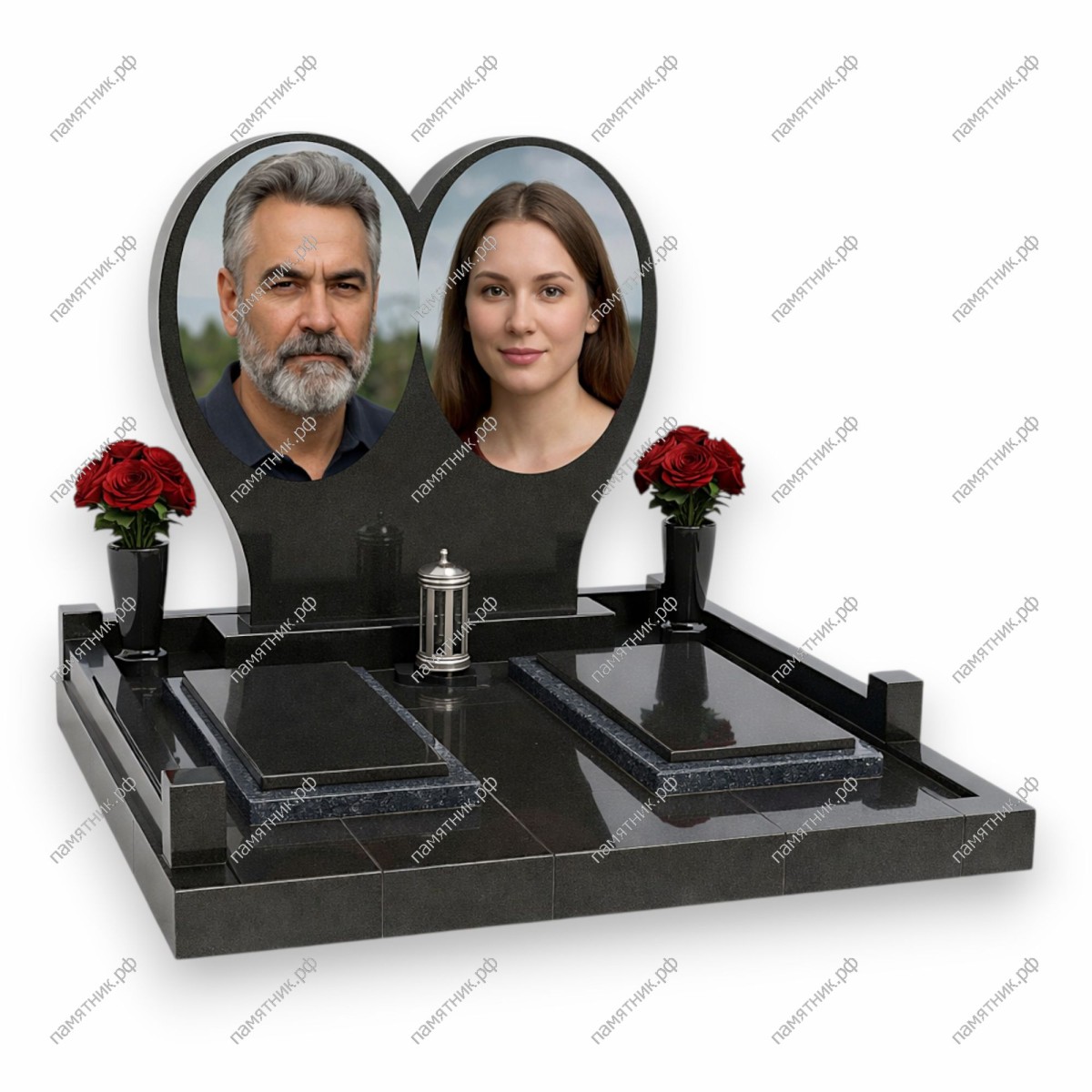 - Фигурная стела "Двойное сердце" с идеальной зеркальной полировкой.