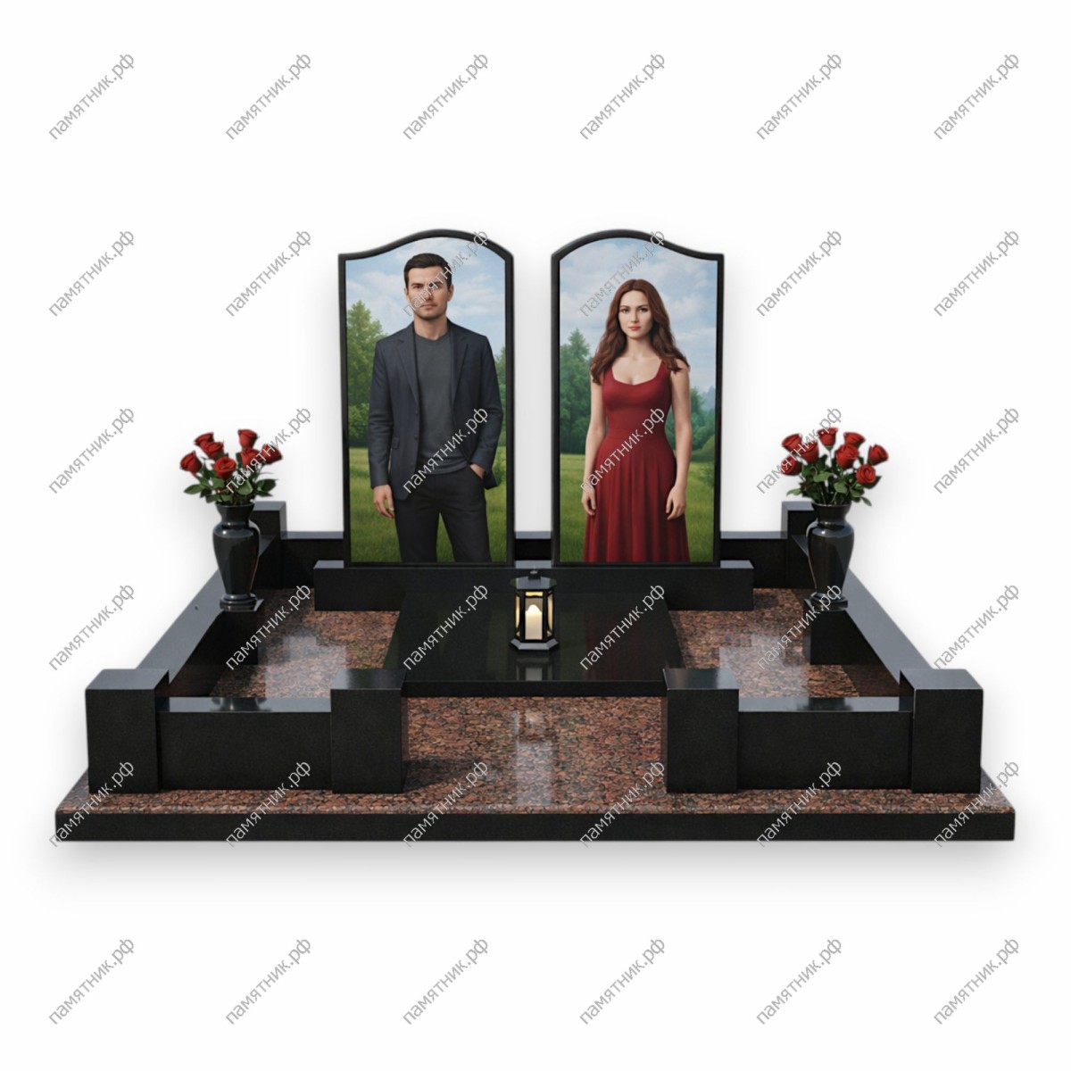 Симметричный парный мемориал, состоящий из двух независимых стел. Строгость линий и отсутствие лишних деталей подчеркивают торжественность момента.