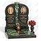 Выразительный авторский памятник с элементами скульптурной резки. Черные стелы имеют сложный, многоуровневый рельеф по внешним краям, придающий композиции динамику. Центральная часть и надгробные плиты выполнены из изумительного зеленого гранита.