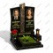 Строгая, выверенная классика. Две зеркально отраженные черные стелы с плавным расширением кверху разделены прямой, лаконичной колонной из коричневого гранита с золотым крестом. Дизайн транслирует надежность и вечную память.