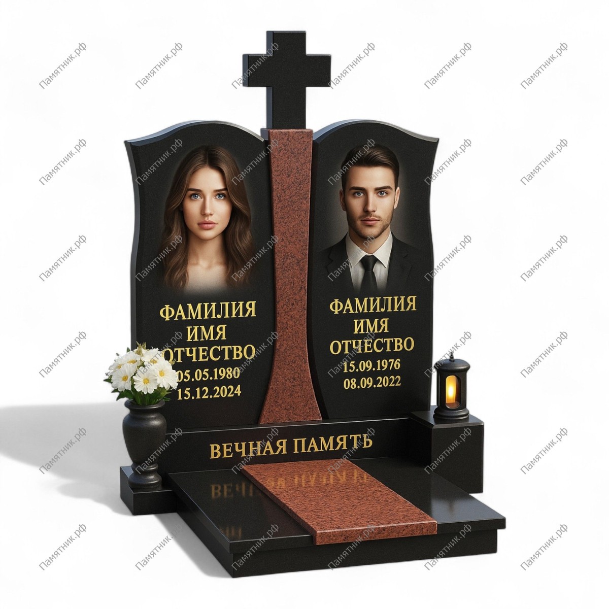 Строгий, монументальный и величественный мемориал. Симметричные черные стелы с легким волнообразным изгибом верхней грани дополнены высокой центральной колонной из красного гранита. Главным духовным акцентом служит венчающий композицию строгий черный гранитный крест.