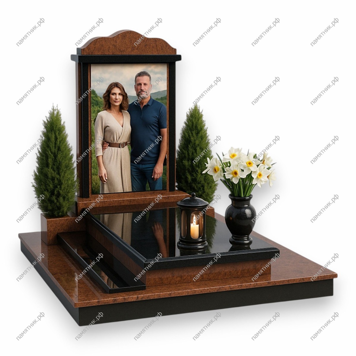 - Материал: Черный гранит + красно-коричневый гранит.