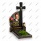 Величественный комплекс, архитектурным центром которого является высокий резной крест из черного гранита. Стела имеет мягкий радиусный срез, на фоне которого выигрышно смотрится овальный портрет. Сочетание полированных поверхностей и матовых фасок придает памятнику объем.