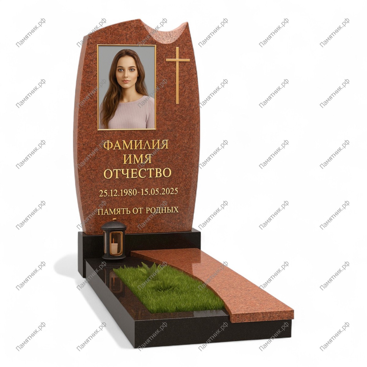 Этот памятник словно говорит о том, что за гранью скорби всегда есть место свету. Лаконичность форм делает его универсальным и благородным. Открытый цветник прямоугольной формы позволяет дополнить каменную композицию живыми растениями, вдыхая в мемориал жизнь и нежность.