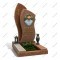 Изящный и очень теплый по настроению комплекс, состоящий из двух пересекающихся стел с мягкими, скругленными контурами. Обе детали выполнены из насыщенного красно-коричневого гранита с богатой природной текстурой. Правая стела шире и имеет круглую нишу, в которую вставлен изысканный керамический медальон с портретом.