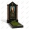 Архитектурный ансамбль, стилизованный под классический портик или часовню. Центральная черная стела с остроугольным завершением («домиком») надежно укрыта между двумя массивными колоннами из коричневого гранита.