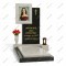 Смелый, новаторский памятник для тех, кто ценит современный геометрический дизайн. Доминантой является строгая черная прямоугольная стела с лаконичным золотым крестом. Главный акцент смещен в левую верхнюю часть — это выступающая квадратная рамка (паспарту) из светло-серого гранита, внутри которой бережно сохранен портрет. Эта светлая деталь словно парит в воздухе, фокусируя все внимание на лице человека.