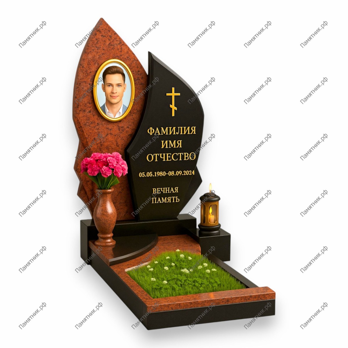 Авангардный комплекс, построенный на сопоставлении двух природных форм. Левая часть из красного гранита выполнена в форме листа, а правая черная часть имеет резкий, стремящийся вверх изгиб.