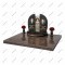 Монументальный семейный комплекс, гармонично сочетающий черный габбро-диабаз и благородный коричневый гранит. Композиция состоит из трех элементов: центральная стела из светлого камня с арочным верхом обрамлена двумя симметричными черными плитами. Портреты выполнены в виде классических овальных медальонов с золотой фаской. Участок установлен на высокий подиум, полностью облицованный полированной гранитной плиткой в тон центральной стеле, создавая завершенный и торжественный вид.