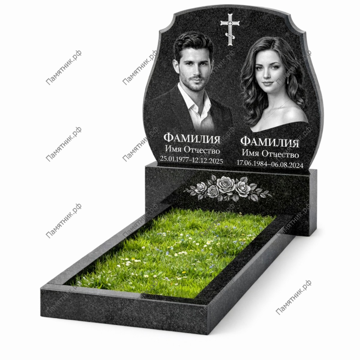 Памятник двойной ПД-26 отличается мягким купольным завершением, которое придает мемориалу благородный и умиротворенный силуэт. Главным украшением модели является художественная гравировка роз у основания стелы, что символизирует неувядающую любовь и вечную память о близких.