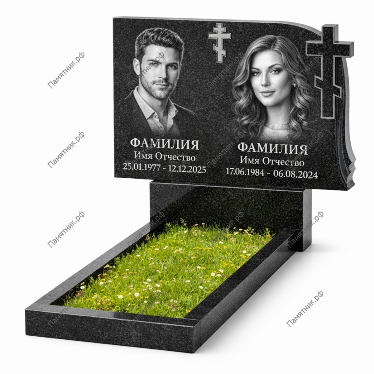 Памятник двойной ПД-39 — это воплощение лаконичности. Тонкие линии арки и отсутствие лишних декоративных элементов позволяют сфокусировать всё внимание на образе близкого человека. Это универсальное решение, которое всегда выглядит достойно и не подвластно веяниям времени.