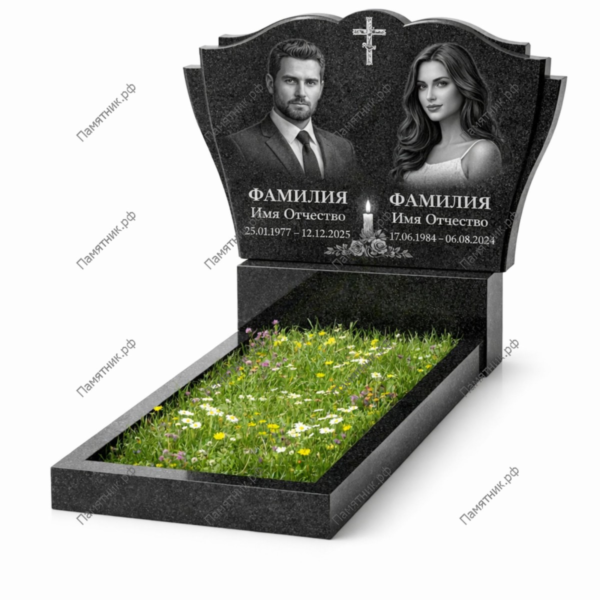 Широкая стела удобна для размещения крупных портретов. Модель комплектуется классическим цветником, который придает месту погребения ухоженный вид.