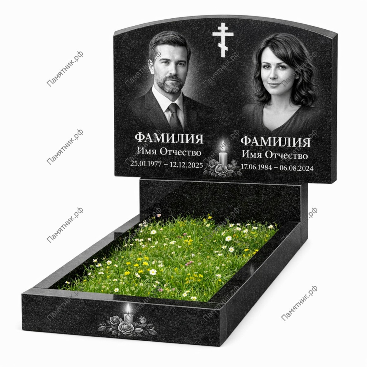 Модель выполнена из премиального гранита. Камень отличается высокой плотностью и не требует сложной реставрации. Полировка до зеркального блеска подчеркивает статусность мемориала и защищает структуру камня от влаги.