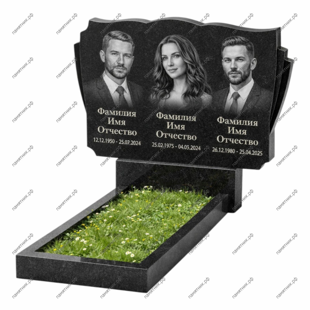 Строгий и нестандартный памятник с интересной геометрией верха: поднятые, слегка заостренные края плавно спускаются к центру стелы. Эта модель выделяется своей лаконичностью и современным дизайном. Широкое гранитное полотно предоставляет максимум пространства для художественного оформления, позволяя сделать портреты крупными и выразительными. Идеально подходит для тех, кто ценит строгую эстетику без лишнего декора.