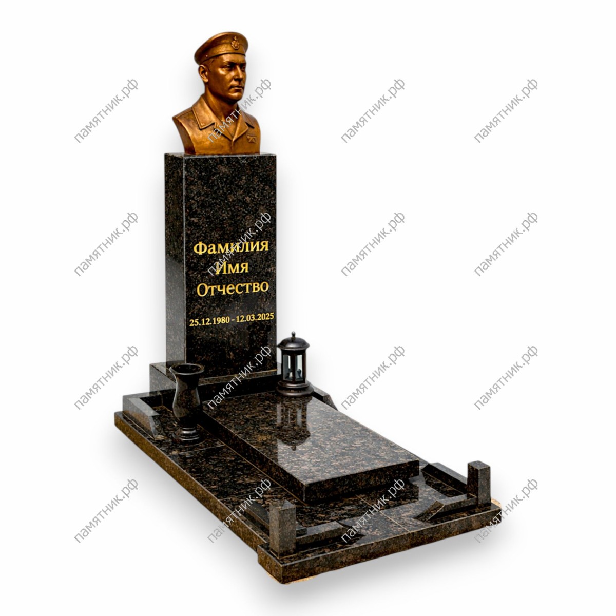 Элитный скульптурный мемориал VIP-класса. Замена классической фотографии на объемный бронзовый бюст делает этот памятник выдающимся произведением монументального искусства.
