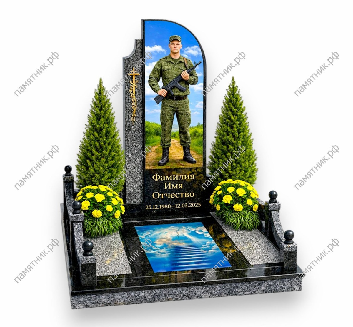 - Центральная надгробная плита с потрясающим полноцветным изображением «Лестницы в небо».