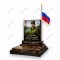 Компактный, но очень выразительный мемориальный комплекс из уникального темного гранита с золотисто-коричневыми прожилками. Многоступенчатое основание и патриотические элементы подчеркивают глубокое уважение к подвигу усопшего.
