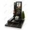 - Двойная асимметричная стела из темного гранита: узкий левый блок и широкий правый с портретом.