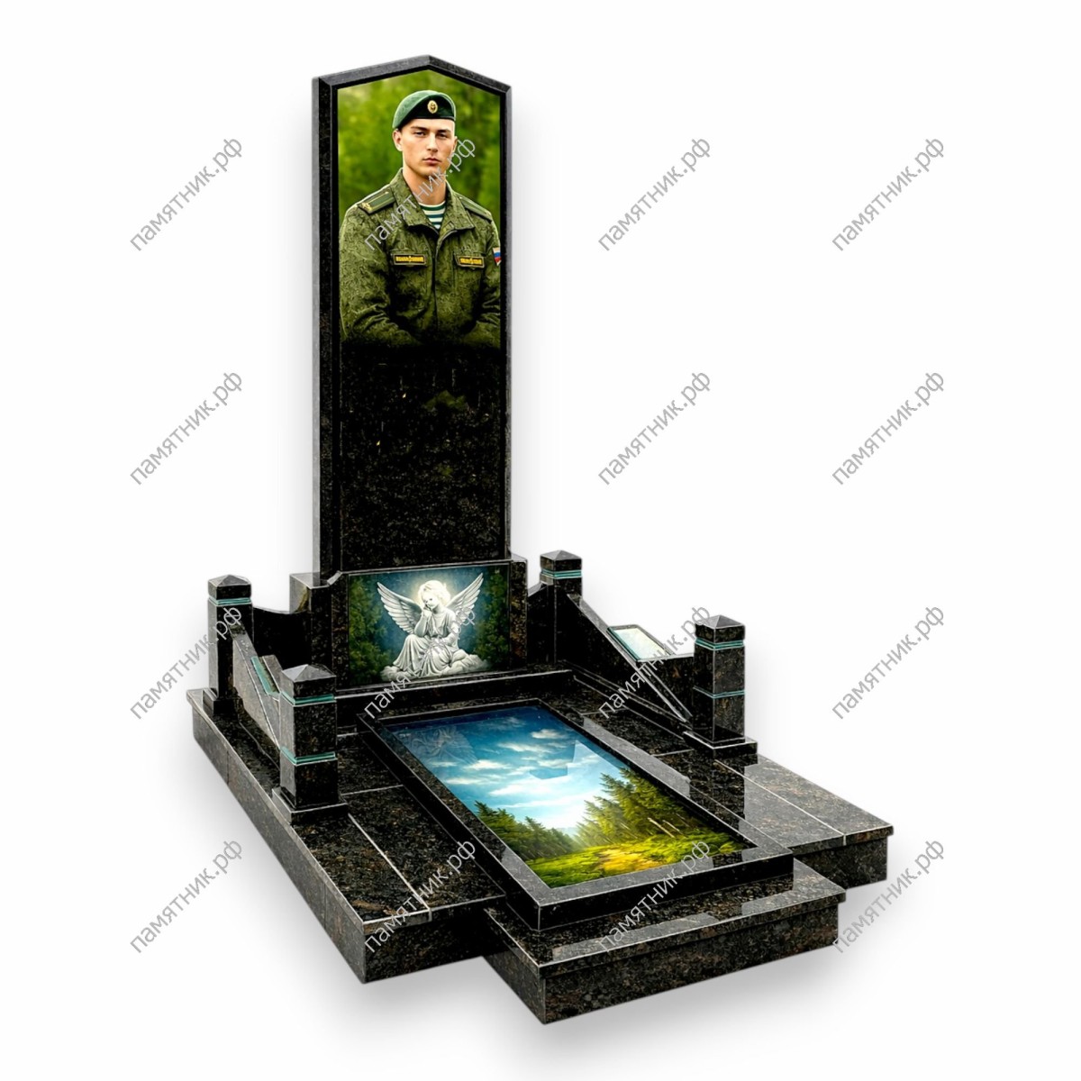 - Интегрированная в основание стелы панель с полноцветным или гравированным изображением скорбящего ангела.
